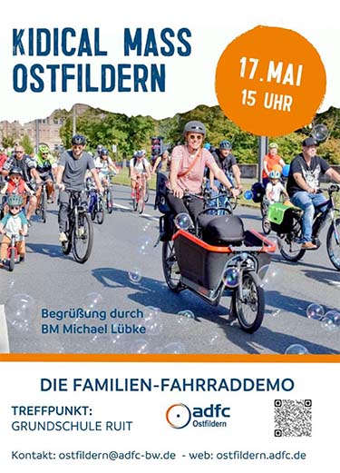 Ein bunter Fahrradumzug rollt durch die Straßen von Ostfildern, um auf die Sicherheit von Kindern im Straßenverkehr aufmerksam zu machen. Sichere Schulradwege, Tempolimits und die Einrichtung von Schulstraßen sind nur einige der Maßnahmen, die die Sicherheit für Kinder auf dem Weg zur Schule und in der Freizeit erhöhen. Alle Kinder, ob mit Laufrad, Fahrrad, im Anhänger oder Kindersitz, und alle Erwachsenen sind herzlich willkommen mitzufahren. Am Ende der Strecke wartet wieder eine Belohnung.